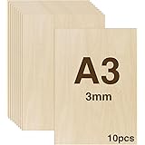 WISYOK 10pcs A3 Plywood Sheets, 420x300*3mm Basswood Sheet, Unfinished Plywood Board for Crafts, DIY...